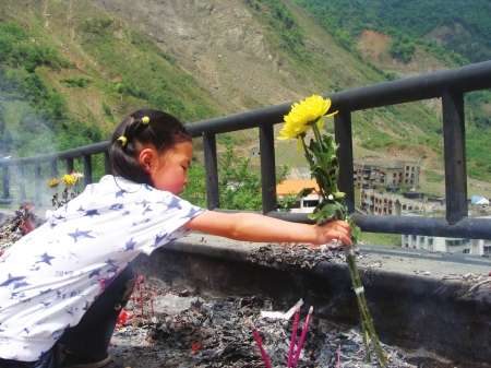 截至昨天下午6點(diǎn),近5萬(wàn)北川人,回到老縣城,通過(guò)放鞭炮,獻鮮花,燒紙錢(qián)等方式,祭奠長(cháng)眠于老縣城廢墟下的親人。